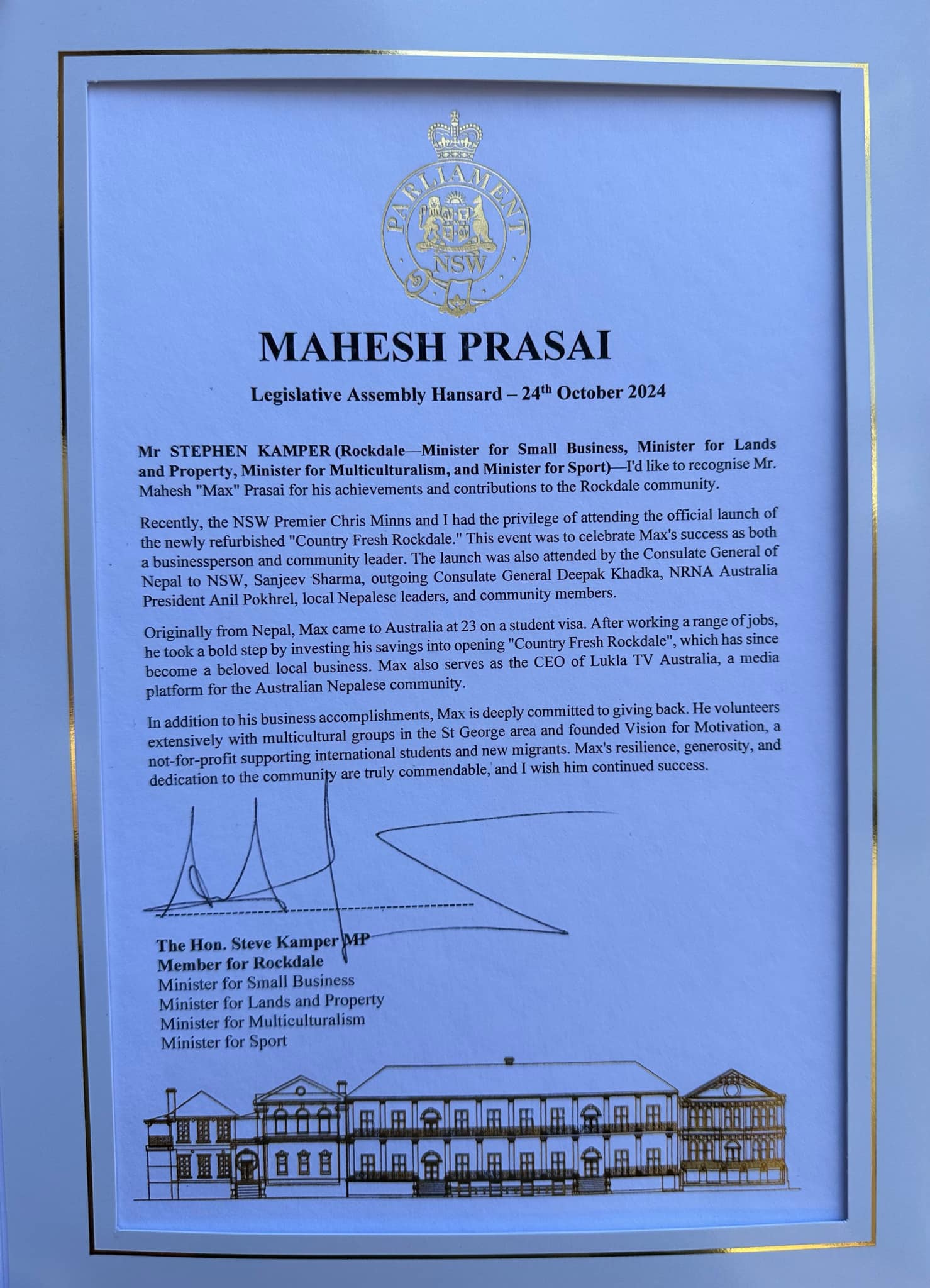 सिड्नीमा खुल्यो सेन्ट मार्टिन कलेज नेपाली काङग्रेश नेतृ सिर्जना सिंहद्वारा उद्घाटन