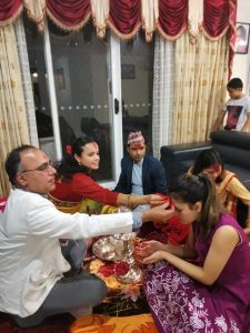 नेपालीहरुको महान पर्व बडा दशैलाई कोरनाको कहर बीच यहाँको स्वास्थ्य सुरक्षाको मापदण्ड भित्र रहेर नेपालीहरुले मान्यजनहरुबाट आर्शिवाद र धार्मिक विधिबाट तयार पारिएको टिका र जमरा ग्रहण गरे । फोटो साभार : समाजिक सञ्जाल